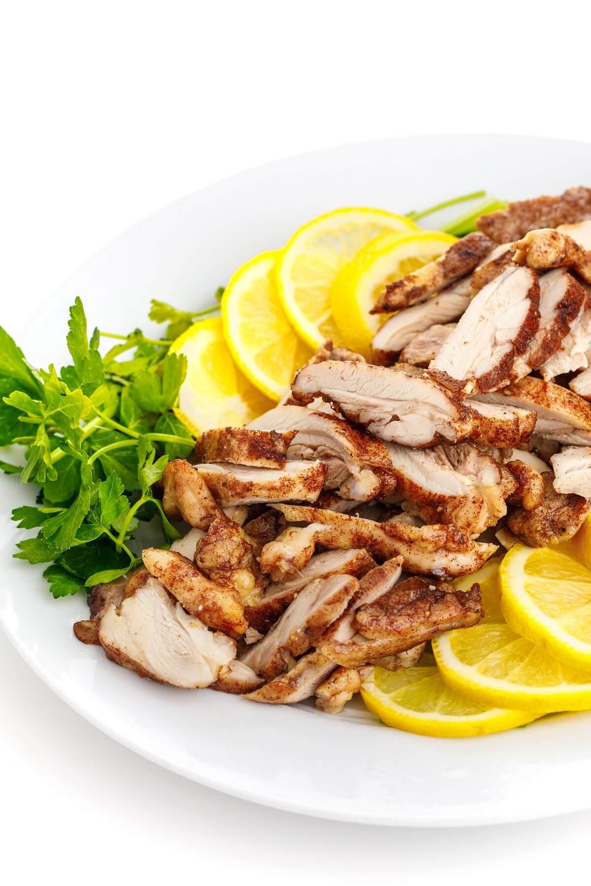 - Prepare 1.5 portions of my All Purpose Lebanese Spice Blend by mixing together all the spices in a small bowl. Sprinkle over both sides of the chicken thighs and bake for 35-40 minutes or until chicken reaches internal cooking temperature of 165 degrees. Serve warm.