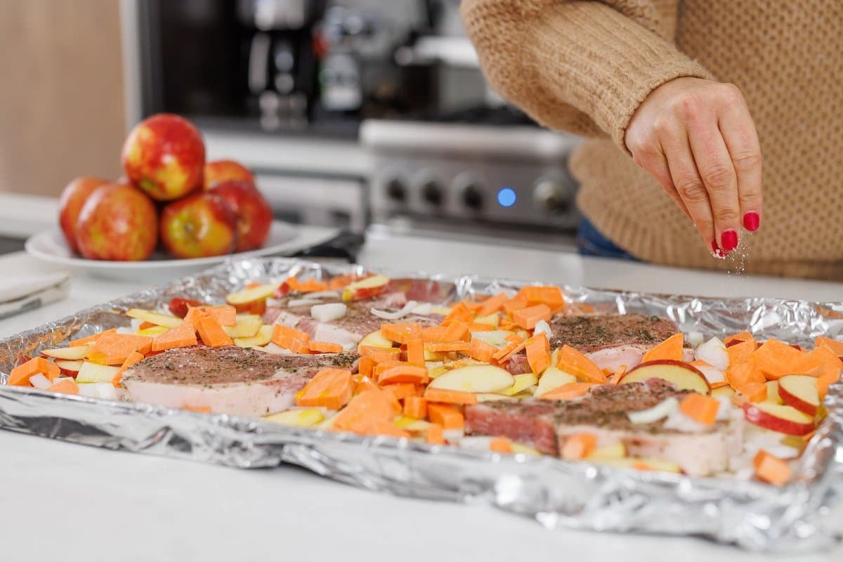 How to Make Sheet Pan Pork Chops with Apples, Onions, and Sweet Potatoes