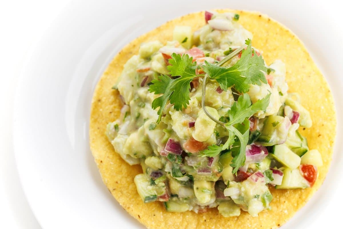 While I love my family’s Middle Eastern recipes, I also love learning recipes from other parts of the world. Made with creamy avocado, tangy lime juice, fresh cilantro and spicy Serranos (or jalapeño), this authentic Mexican Shrimp Ceviche is one of my favorites of all time! I love to offer tostadas which add crunch and texture, but you can also use good old fashioned saltine crackers.