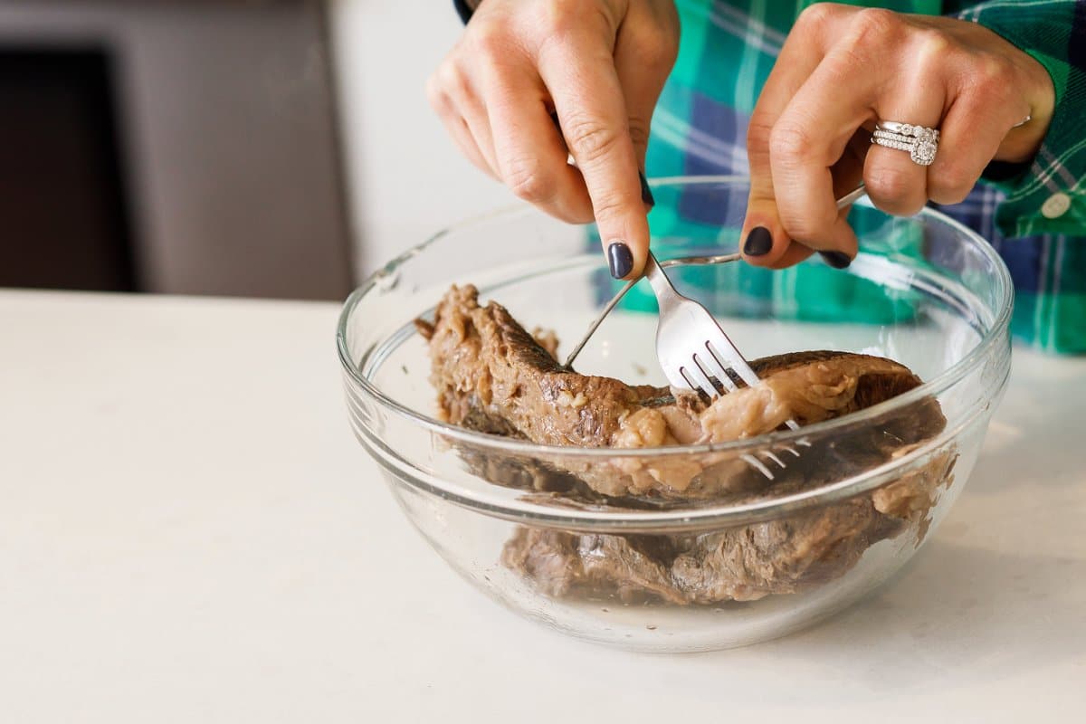 2. Remove roasts from the slow cooker and toss cloves and bay leaves. Let rest for 10 minutes before shredding with two forks.