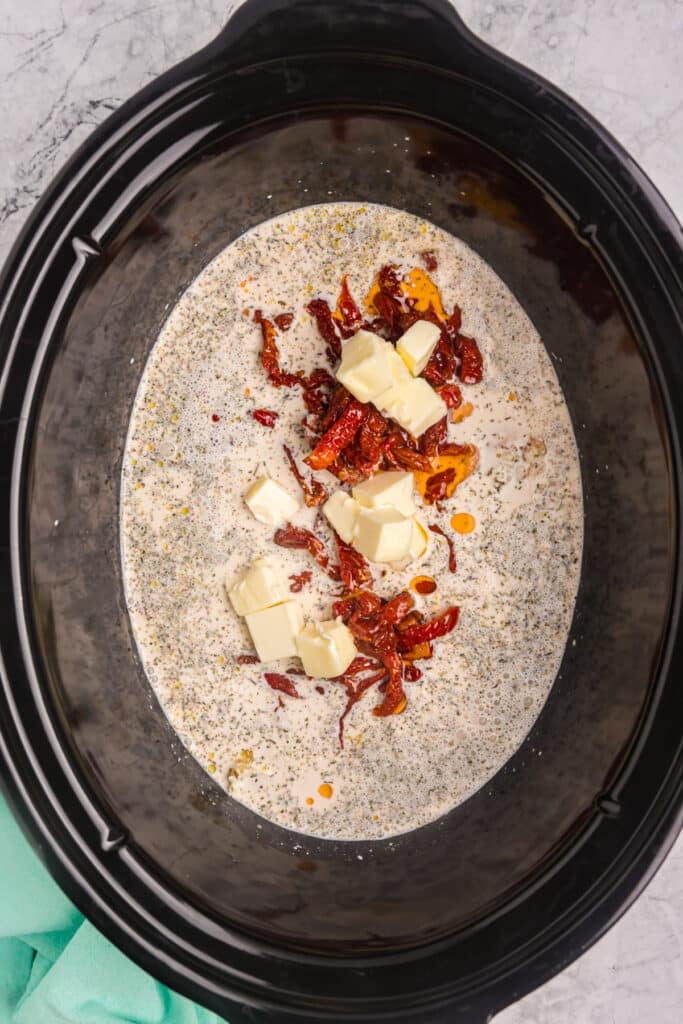 - Step Four: Pour the sauce mixture over the chicken and top with sundried tomatoes and butter.