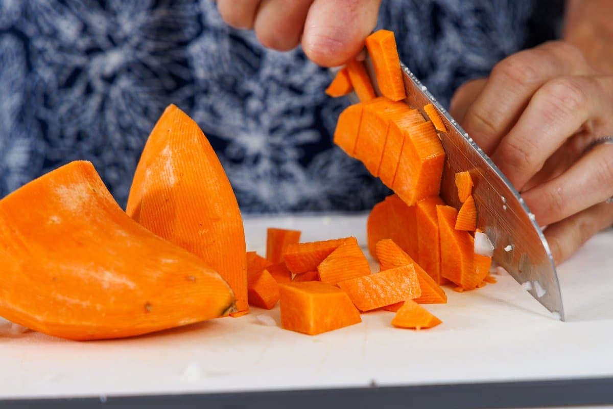 Step 3. Peel and chop your sweet potato.