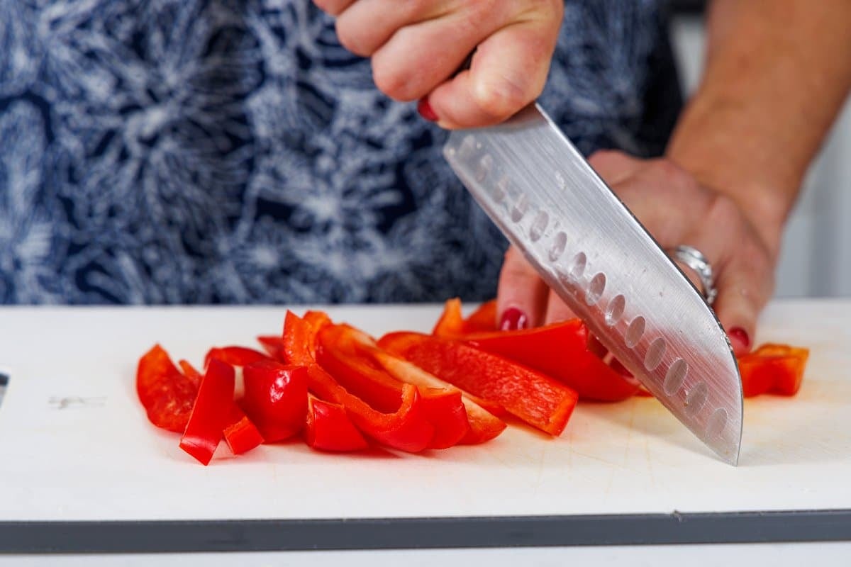 • Red pepper: The sweetest of the bell peppers, it also adds great color to the final dish.