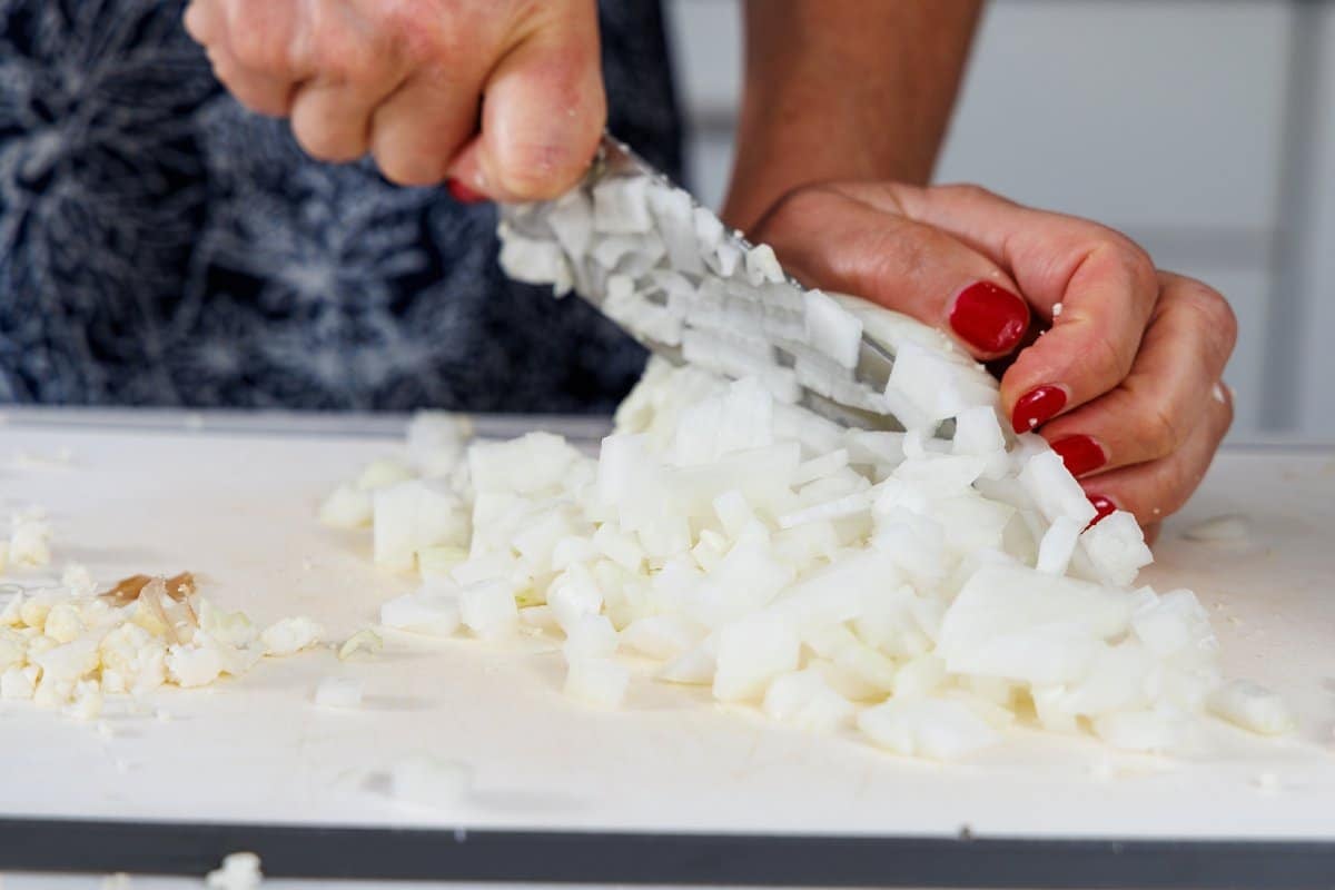 Step 1. Peel and dice your onion.
