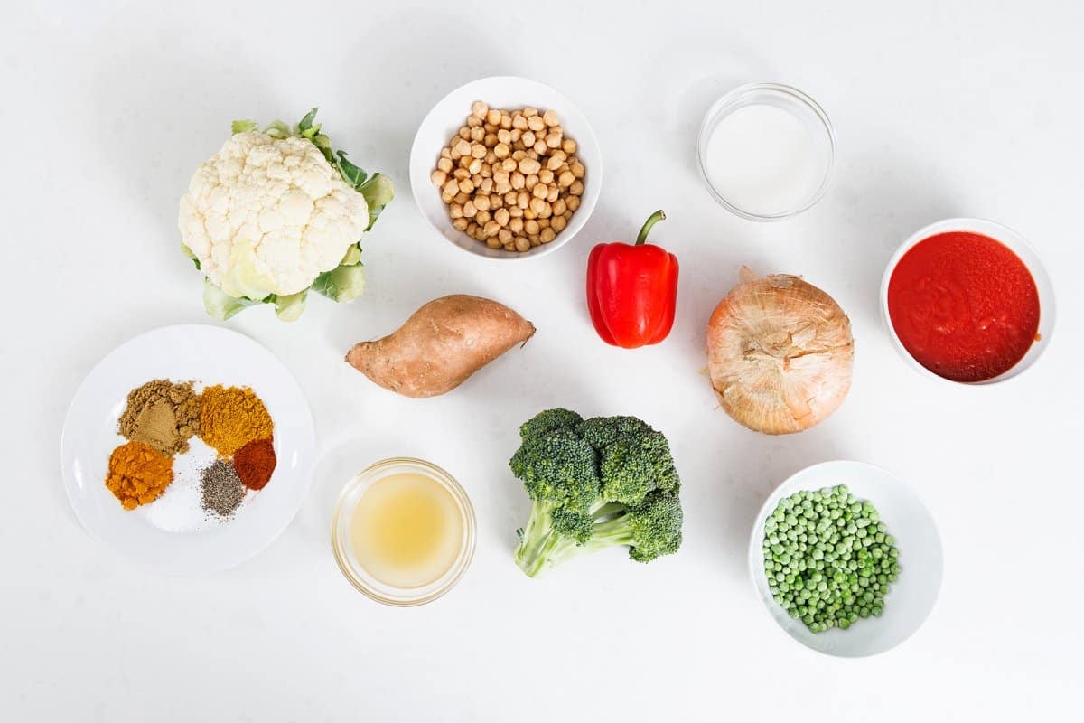 Slow Cooker Vegetable Curry with Chickpeas is the perfect hands-off recipe for a busy weeknight. Warm, comforting, and jam-packed with nutrients, this vegetarian curry recipe well with just about any vegetables you have on hand. In fact, we rarely make it with the same ingredients twice for that very reason! The reason I fell in love with this recipe is because of its versatility, and the ease of it being a slow cooker meal! For added protein, I love adding chickpeas which I always keep on hand in my pantry to whip up a quick veggie tagine with chickpeas, a pan of crispy roasted chickpeas or a big bowl of Lebanese chickpea salad.