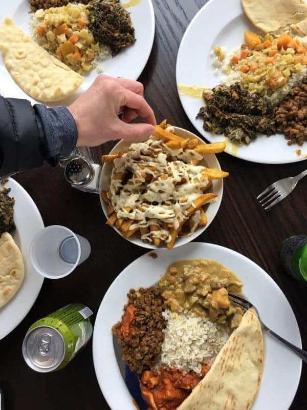 I enjoyed a hearty Indian curry combo including a lamb stew, spicy lentils and chicken tikka masala. We also indulged in curry fries which were out of this world. Hands down, this was my favorite lunch of the trip.