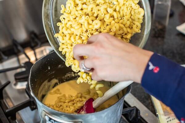 To boost the nutrition of the Mac and cheese, I roughly chop cauliflower into bite-sized pieces then add it to the boiling water about 2 minutes before the pasta is done cooking.