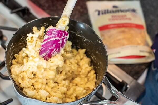 Remove from the heat then stir in the Tillamook shredded cheese. While I love using sharp cheddar, you can also use medium cheddar or even Colby jack.