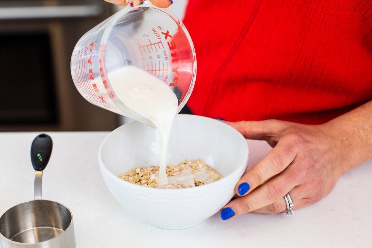 1/2 cup whole milk, 1/2 cup Old Fashioned Oats, 1 teaspoon vanilla, 1/4 teaspoon cinnamon, pinch salt