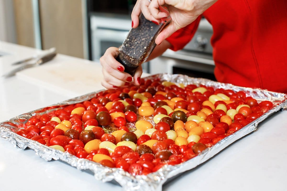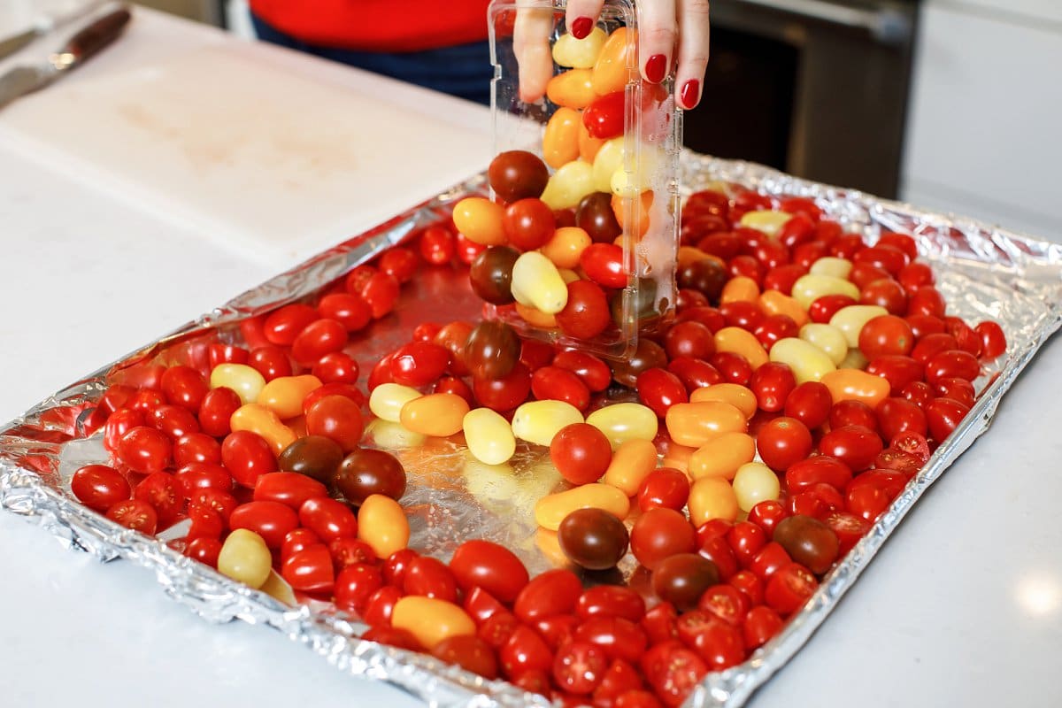 - Sprinkle SUNSET® tomatoes in an even layer on a baking sheet and toss with olive oil plus salt and pepper to taste. Roast until tomatoes start to soften and burst, about 20 minutes.