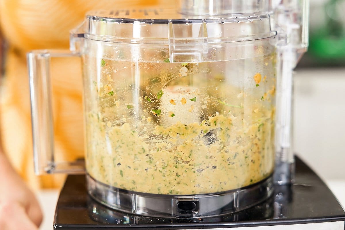 Fifth, pulse the mixture on high until it’s smooth and the fresh ingredients are evenly incorporated. (Psst: It’s fine if it’s slightly chunky — a little bit of texture is a fantastic thing!)