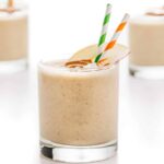 This thick and creamy smoothie recipe is protein packed and made with sweet apples, creamy peanut butter, and a pinch of cinnamon.