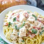 A jarred Alfredo sauce makes this recipe super simple—Classico Roasted Garlic and Trader Joe’s are great picks.