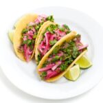 Return shredded beef to slow cooker and sprinkle with lime juice. Serve with corn tortillas, cilantro and minced onion.