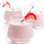 This thick and creamy strawberry protein smoothie is packed with nutrients and over 30g protein per serving. Perfect for on-the-go sipping, this smoothie is the perfect healthy breakfast or snack to give you long lasting energy.