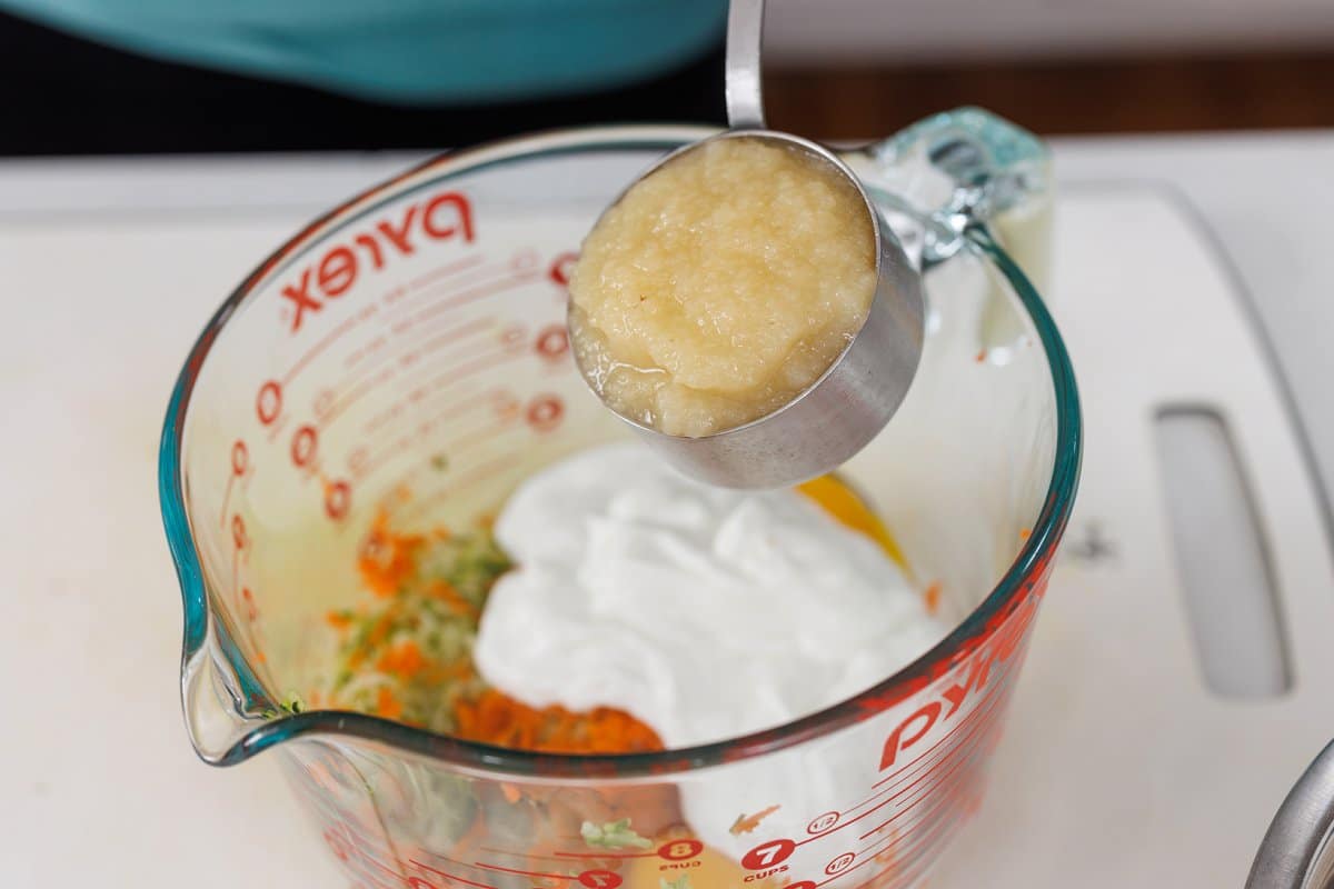 - Applesauce: Helps to bind the muffin together, but also acts as a natural sweetener.