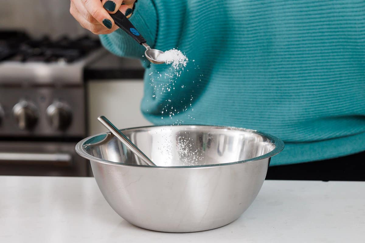 Finish with the baking powder, baking soda, and salt.