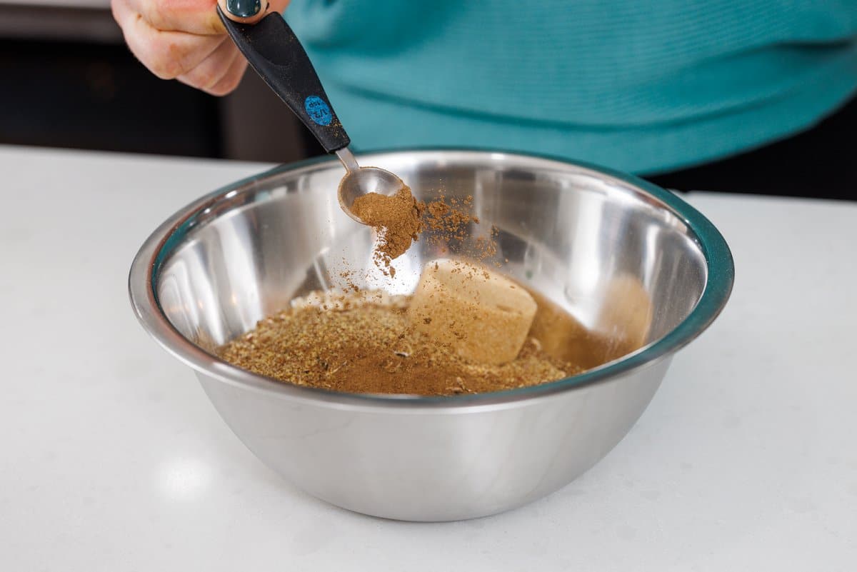 And sprinkle in the cinnamon, nutmeg, ginger, and cloves.