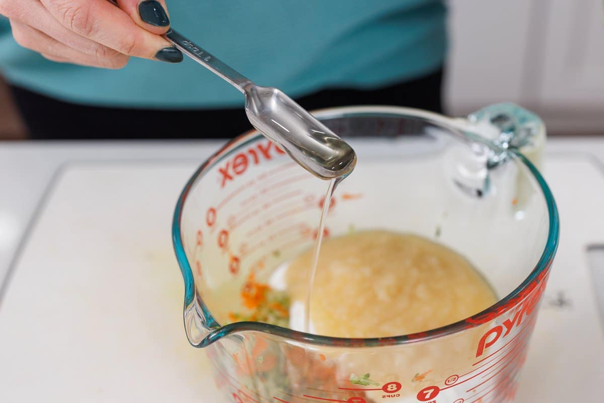 - In a medium bowl, whisk together all of the wet ingredients.