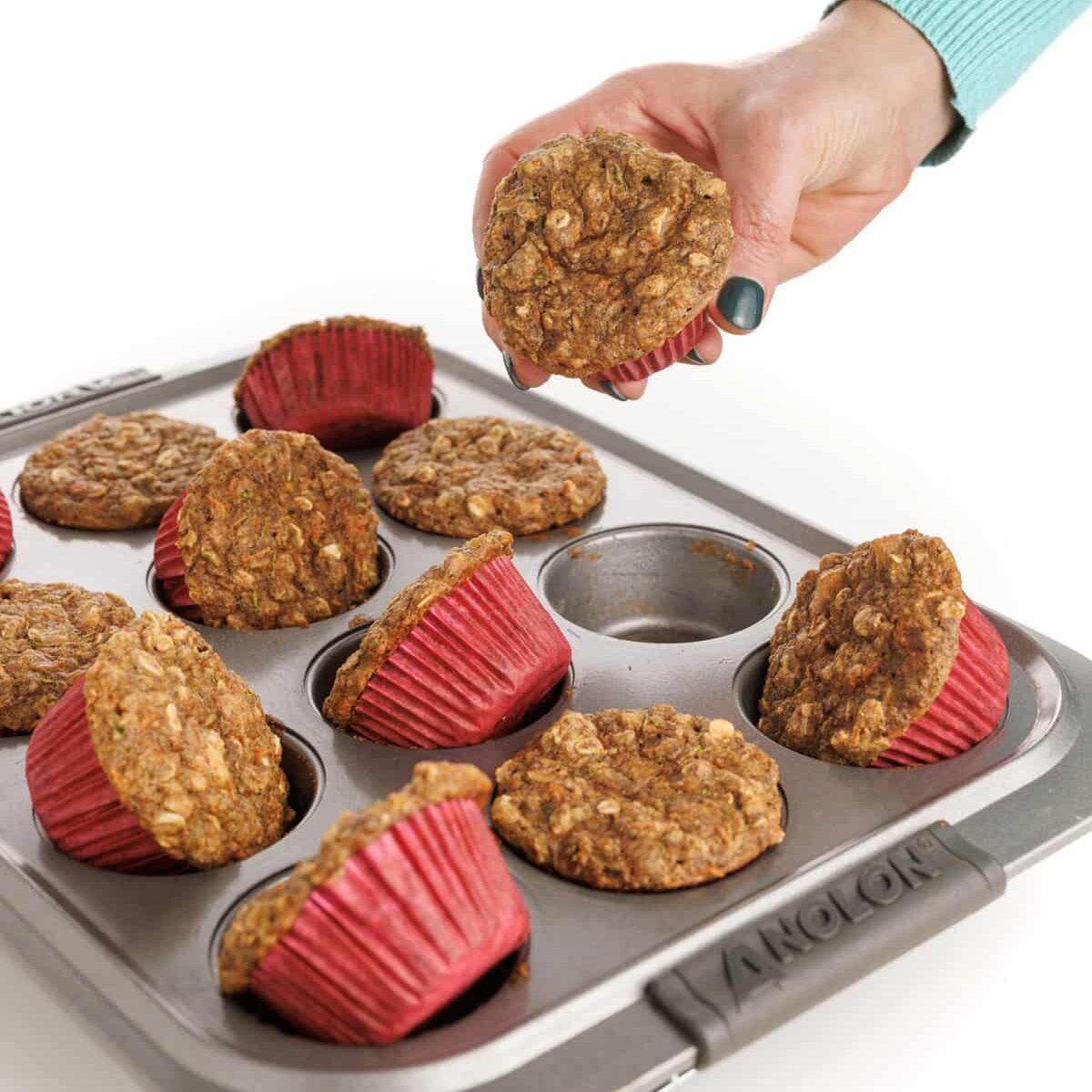 Bake at 400 degrees for around 16 minutes, then remove from the oven and let cool. Then enjoy your Zucchini Carrot Muffins!