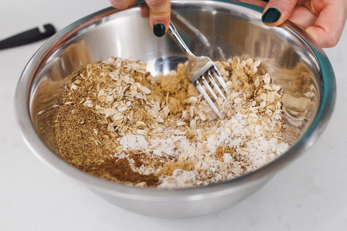 If you decide to add the walnuts, add them and toss them in the flour and oats to get them coated before continuing.